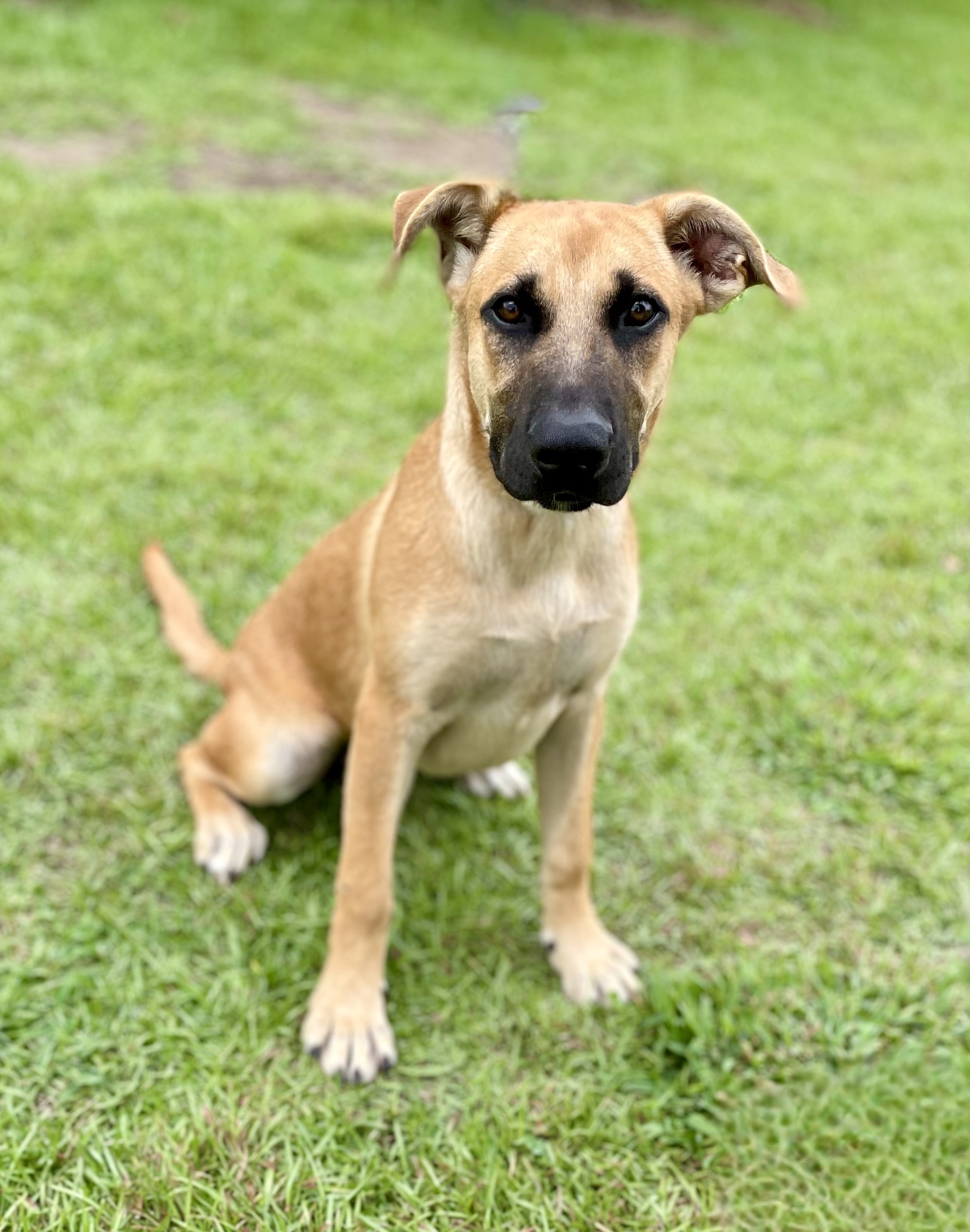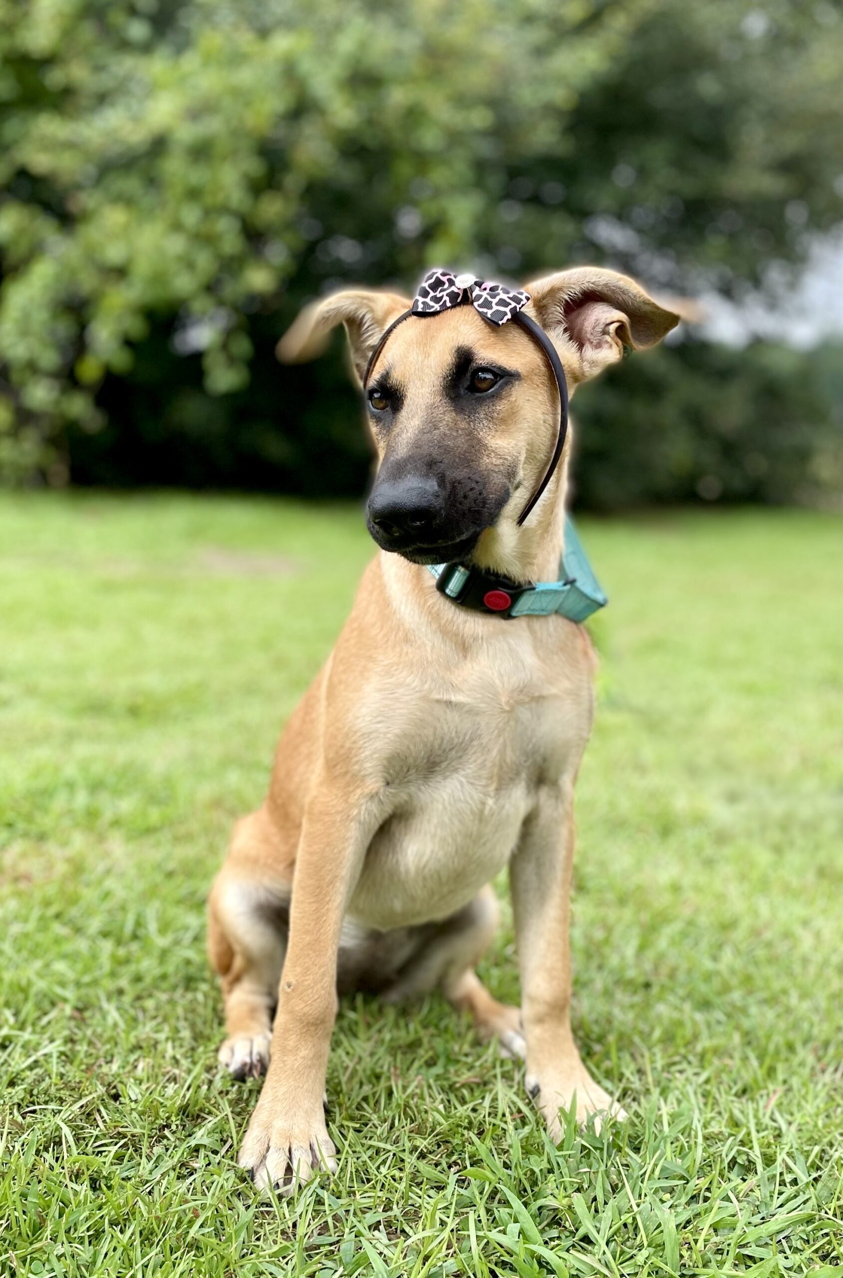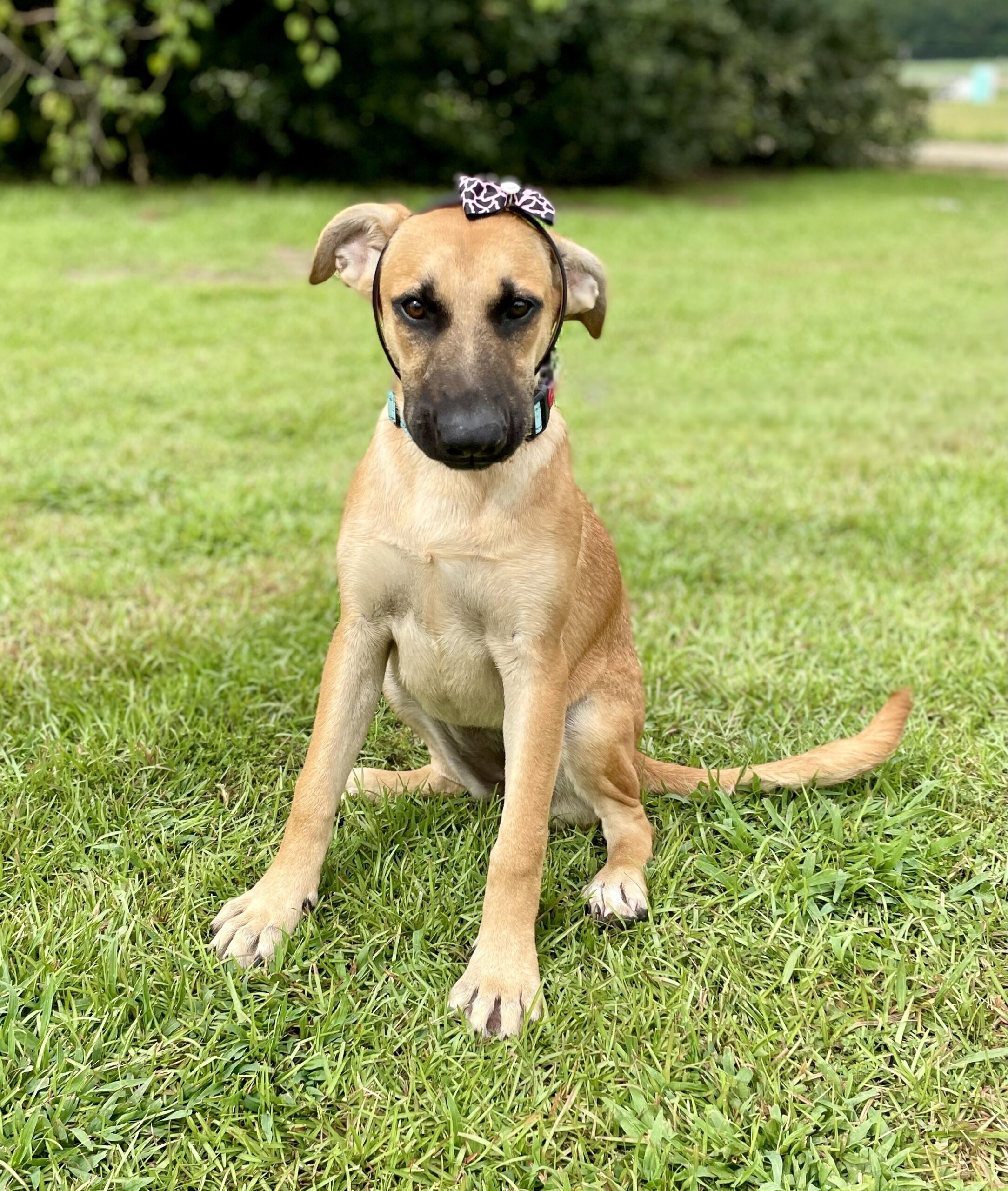 "Hi there, I’m Ginger! I may have four paws and a tail, but I promise I’m 100% heart. At just under a year old, I’m what they call a blank slate, ready to learn, grow, and bond with my forever family. Basically, I’m the best kind of DIY project: already adorable, just waiting for your love and a few treats to help me blossom! I’m a shy girl at first (stranger danger is real, okay?), but give me a little time and patience, and you'll see my brave, goofy side shine through. Once I feel safe, I’m all tail wags, zoomies, and happy dances! I love other dogs (seriously, can we have a playdate?), I’m cool with horses, I respect cats, Chickens and ducks? No problem—I’m basically a barnyard peace ambassador. I’m working on my leash manners (getting better every day!), I already know how to sit like a champ, and I wake up in a good mood every single morning. Sunshine, tail wags, repeat! If you're looking for a sweet, gorgeous girl to grow up with, I might just be your soulmate. Adopt me and let’s start our adventure together. I’ve got a lifetime of love to give and I’m ready when you are. Love, Ginger"