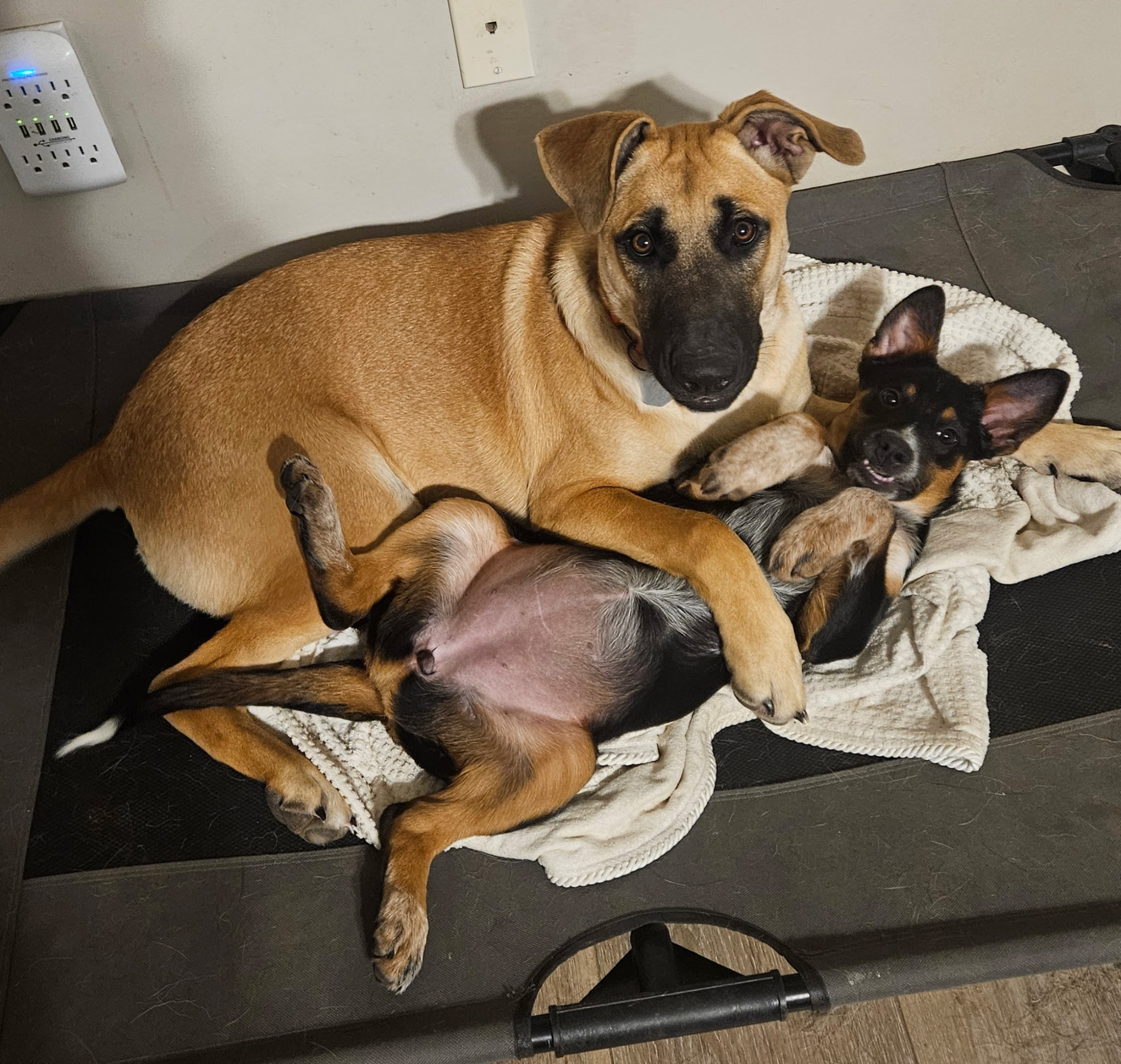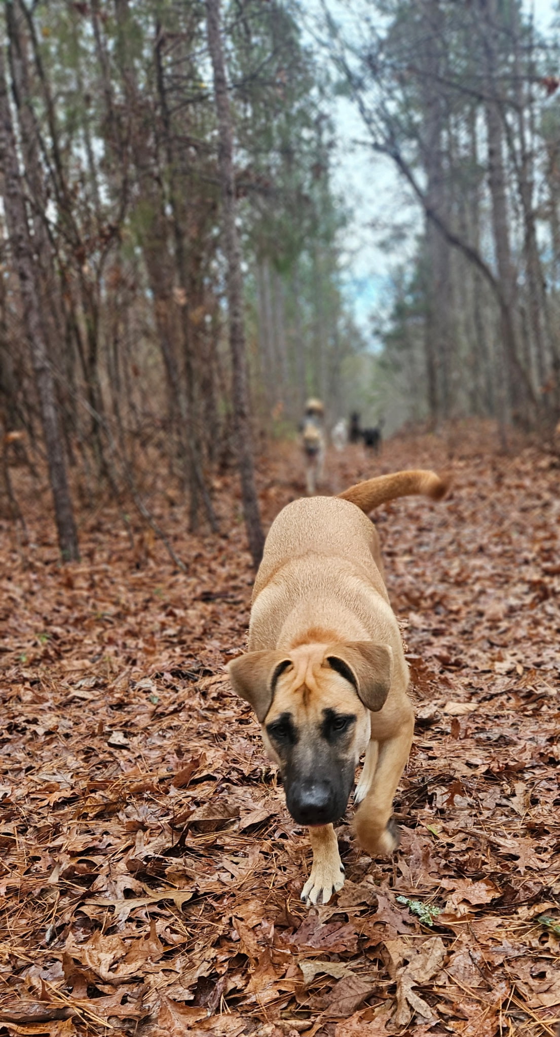 "Hi there, I’m Ginger! I may have four paws and a tail, but I promise I’m 100% heart. At just under a year old, I’m what they call a blank slate, ready to learn, grow, and bond with my forever family. Basically, I’m the best kind of DIY project: already adorable, just waiting for your love and a few treats to help me blossom! I’m a shy girl at first (stranger danger is real, okay?), but give me a little time and patience, and you'll see my brave, goofy side shine through. Once I feel safe, I’m all tail wags, zoomies, and happy dances! I love other dogs (seriously, can we have a playdate?), I’m cool with horses, I respect cats, Chickens and ducks? No problem—I’m basically a barnyard peace ambassador. I’m working on my leash manners (getting better every day!), I already know how to sit like a champ, and I wake up in a good mood every single morning. Sunshine, tail wags, repeat! If you're looking for a sweet, gorgeous girl to grow up with, I might just be your soulmate. Adopt me and let’s start our adventure together. I’ve got a lifetime of love to give and I’m ready when you are. Love, Ginger"