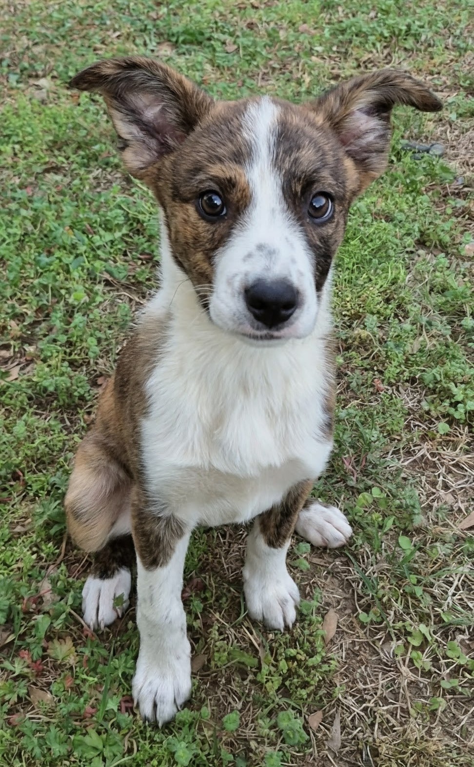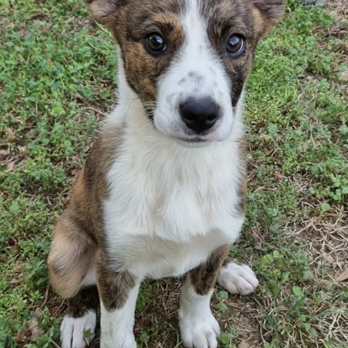 Cherry is as sweet as her name suggests. This adorable girl is the perfect mix of gentle and playful. She loves spending time outside, especially when she gets to run around and explore, and feeding time is definitely one of her favorite parts of the day! Cherry also can’t resist a good squeaky toy, those are her absolute favorite. She’s already puppy pad trained and even knows how to sit, making her a smart little girl who’s off to a great start. Cherry is wonderful with other dogs and does great with kids, making her an easy addition to a loving family. One of her cutest quirks? She’s not a big fan of stairs. She’ll bravely tackle the really small ones, but anything bigger is a no-go for her (for now!).