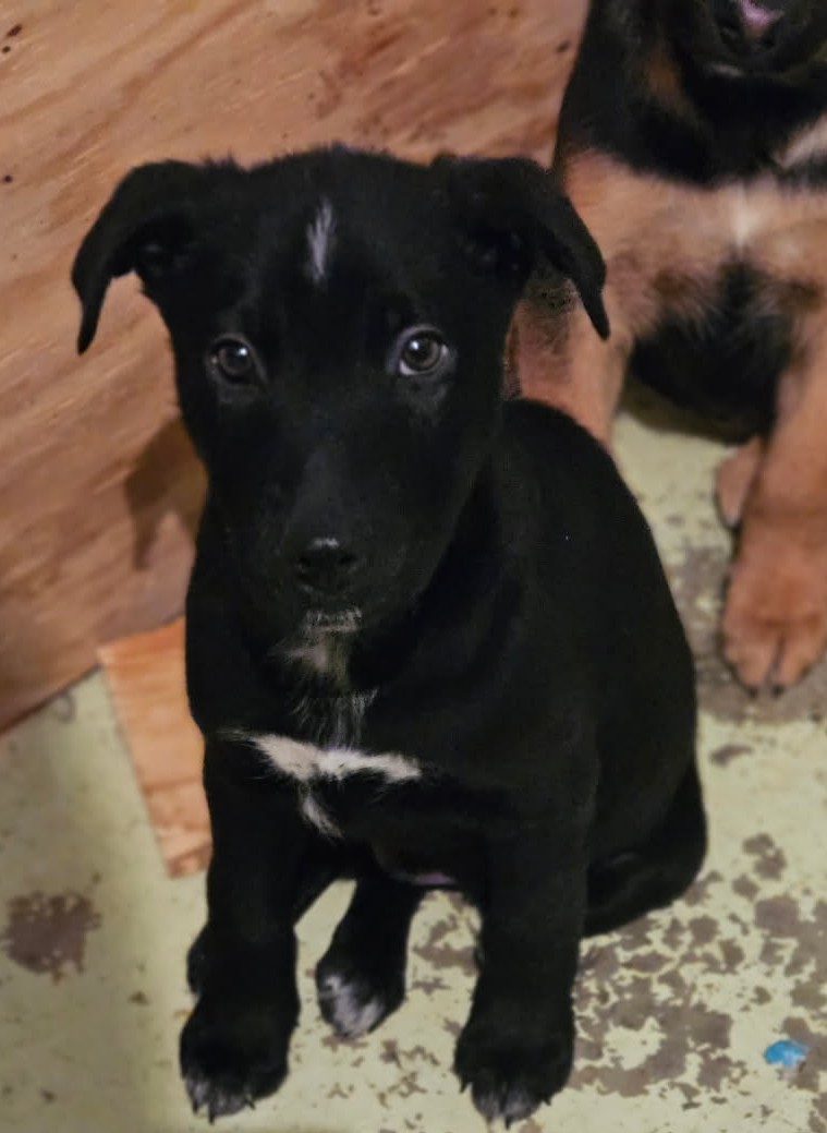 Meet Dakota — a shy, sweet black Lab mix with adorable white markings.