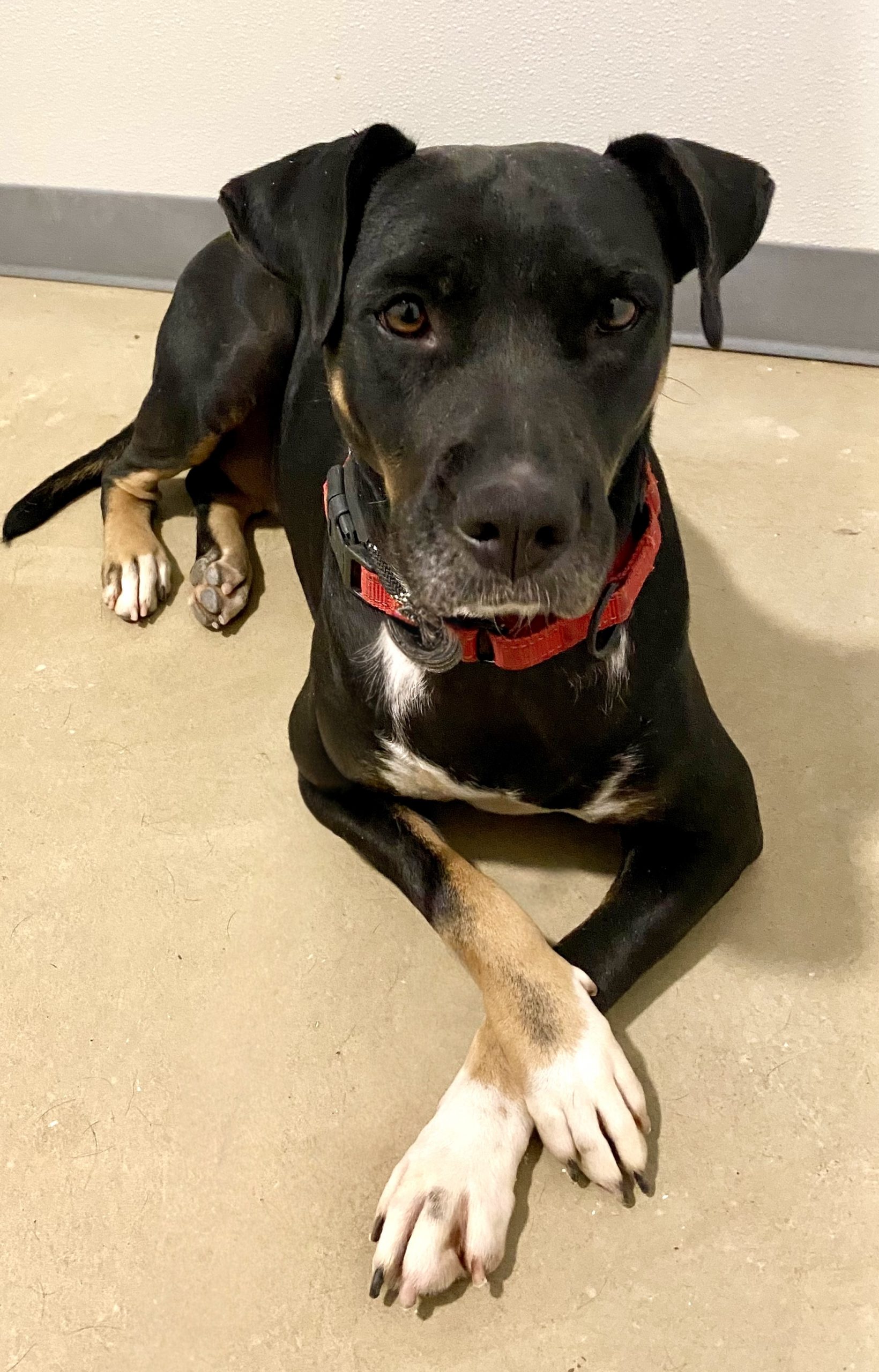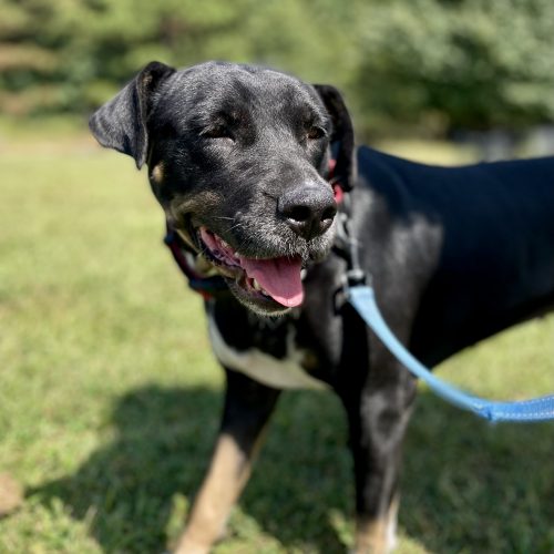 Rachel was dropped off and ended up near a volunteers house who ended up fostering her. She loves kids and people, but we suggest her being in a home with no other dogs as she is dog selective.