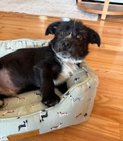 Because I work 12+ hour shifts, Shadow stays in a crate all day, but he’s well-behaved—never pees or poops inside. He’s a confident little terrier mix, and while his mom is a tiny, sweet, smooth-haired dog named Cupcake, his dad is around 15-18 lbs. Both parents are affectionate, and I believe Shadow will be smaller than his dad.